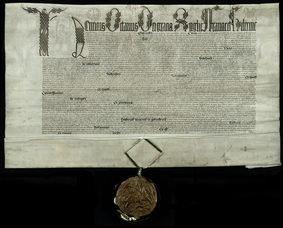 The King’s Hall material includes the charter of Edward III founding and incorporating the college and related deeds conveying property in Cambridge to be used to site the college. Gifts and purchases of property are also recorded, although the college did not have to rely solely on the income from its estates for funds. Additionally accounts survive in an almost unbroken series from 1337 to 1545 which provide us with a unique insight into college life, from the food that the household ate, to the types of servants it employed, to the work and contents of the library. No such series of accounts survives for Michaelhouse. However, there is a similar record of its foundation by Hervey de Stanton and the extension of its property beyond the college grounds. Additionally a cartulary begun by John Otryngham, Master of the college in the fifteenth century, is extant and bears his name.