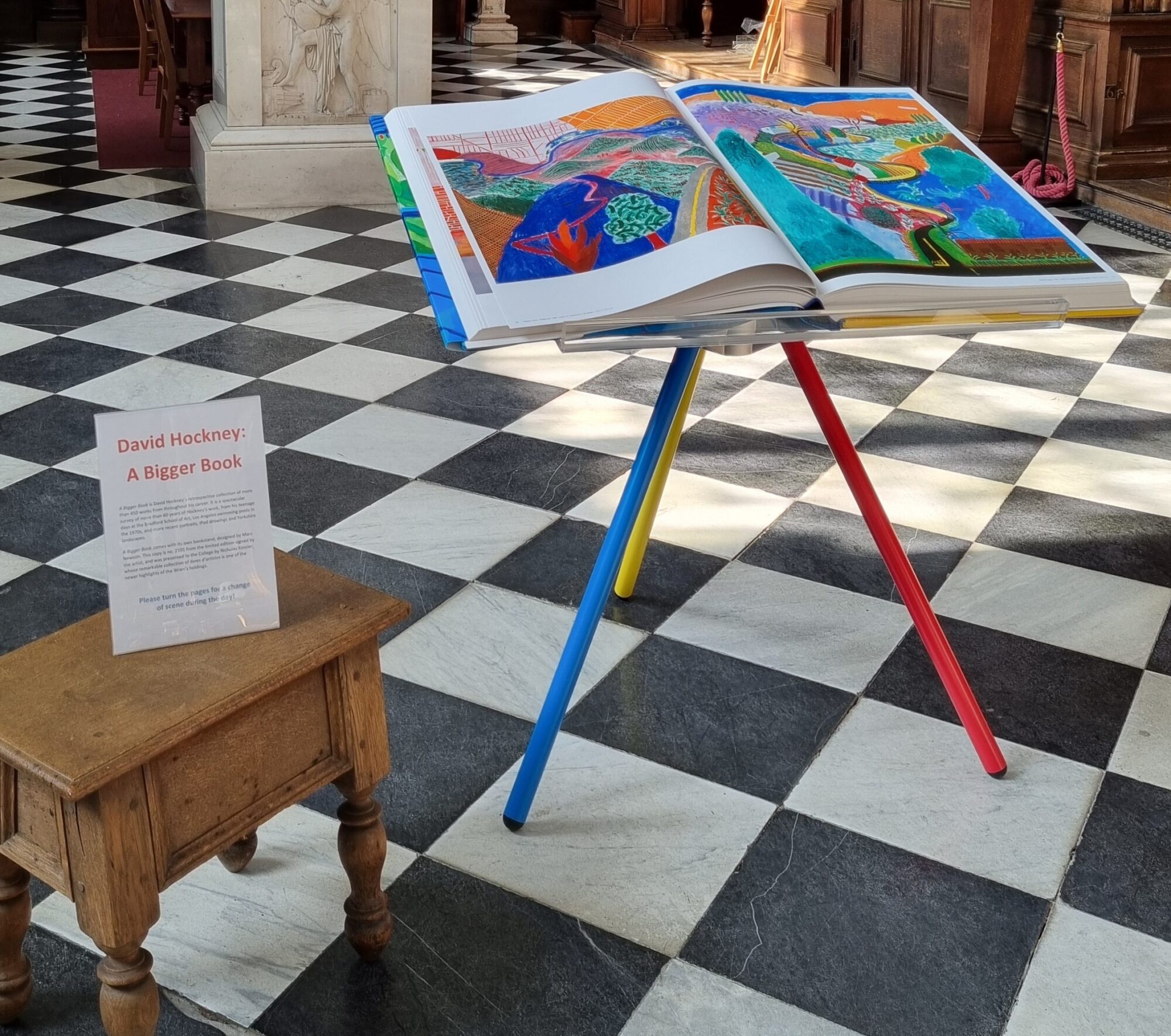 ‘A bigger book’ by David Hockney on display in the Wren Library (Kessler.bb.26)