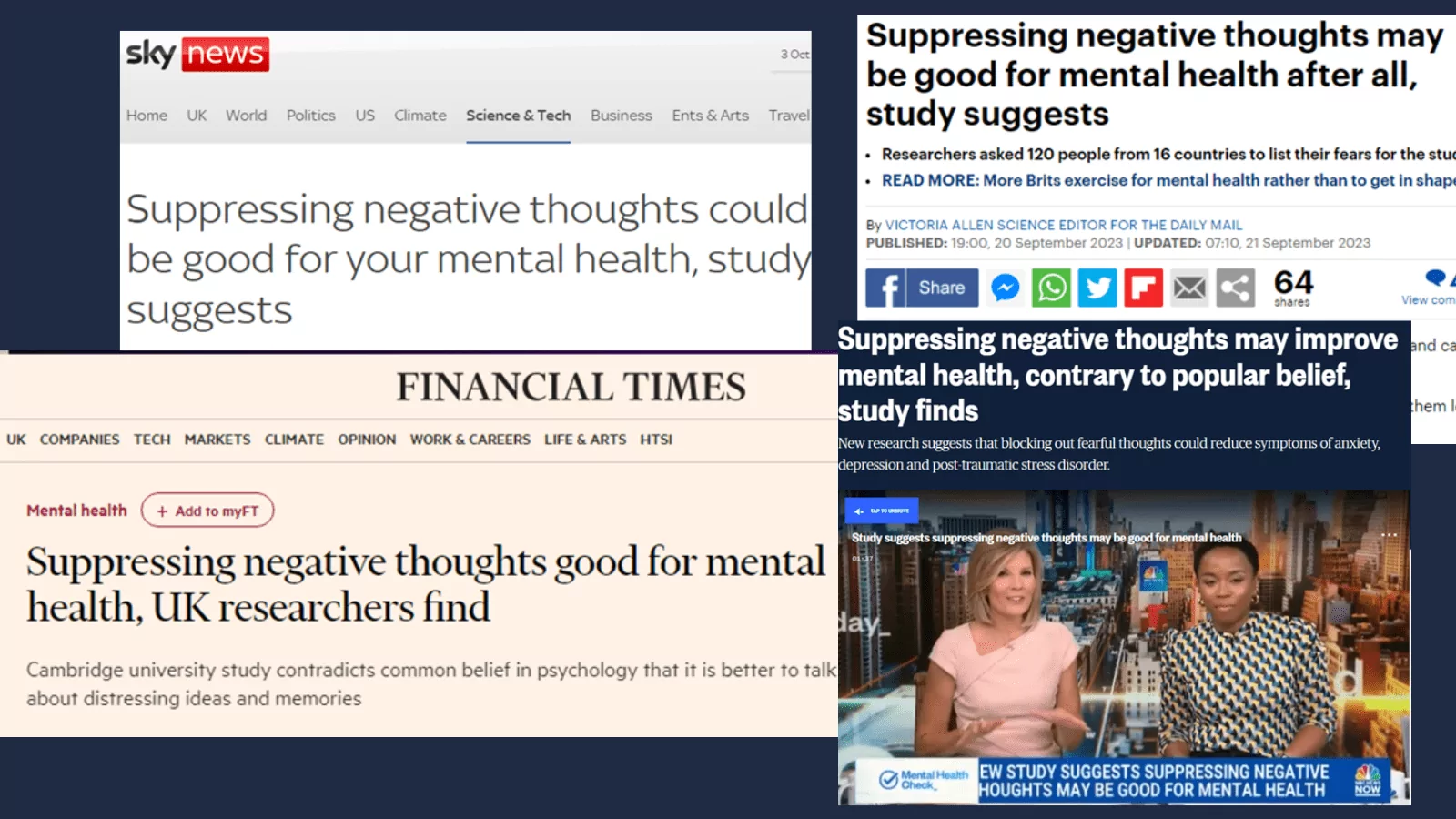 They wanted to test whether training in thought suppression would improve mental health – i.e. whether inhibitory control could stop the retrieval of negative thoughts when confronted with powerful reminders.