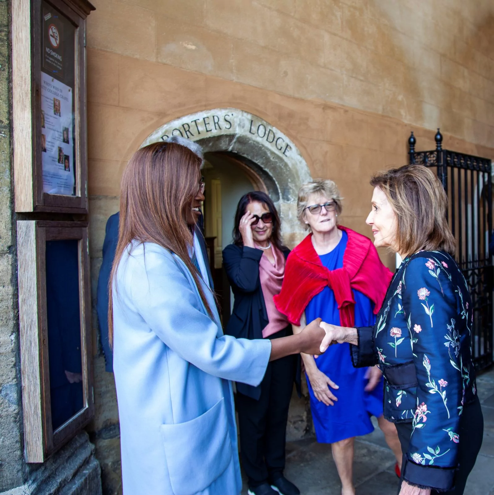Nancy Pelosi, the Speaker of the US House of Representatives, was welcomed to Trinity by the Master, Dame Sally Davies and Serena Cole, President of Trinity College Students’ Union.