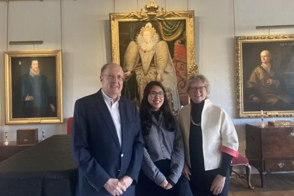 Left to right: former Master Sir Gregory Winter, Chalita Chomkatekaew, and the Master Dame Sally Davies