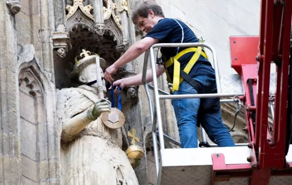 The carpenters designed the medal so it is easy for those passing by the College on Trinity Street to see around Henry’s statue – the real medals are of course smaller.